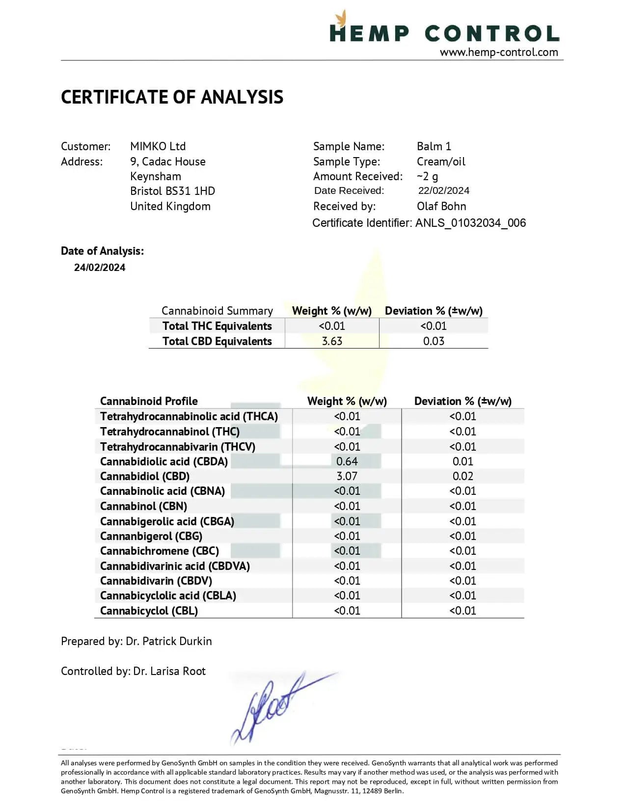 - Nicht psychoaktiv, mitweniger als 0,2 % THC