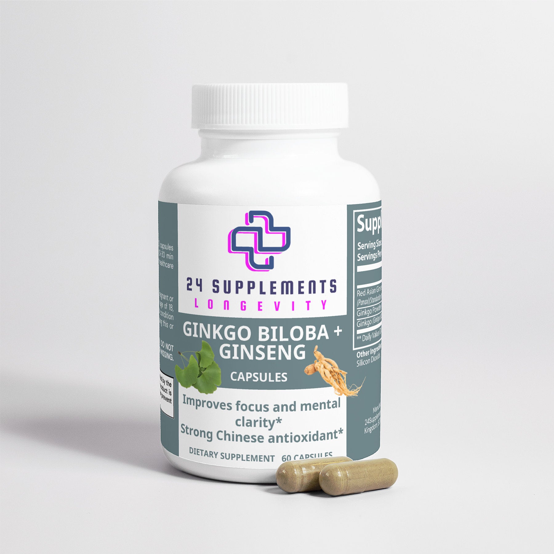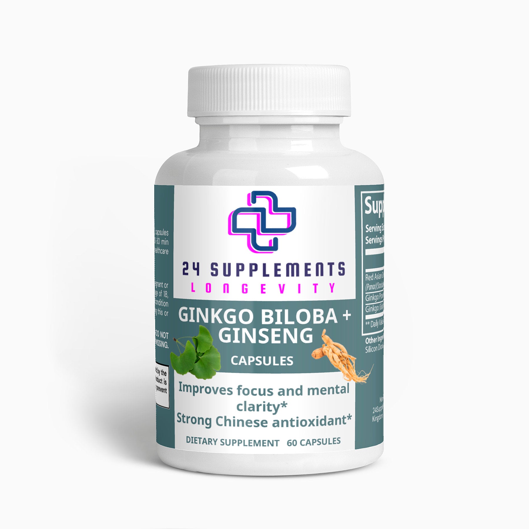 Enhance your longevity with 24Supplements’ Ginkgo Biloba + Ginseng, a potent blend designed to support memory, cognition, and overall health through powerful antioxidants and immune-boosting ingredients.*